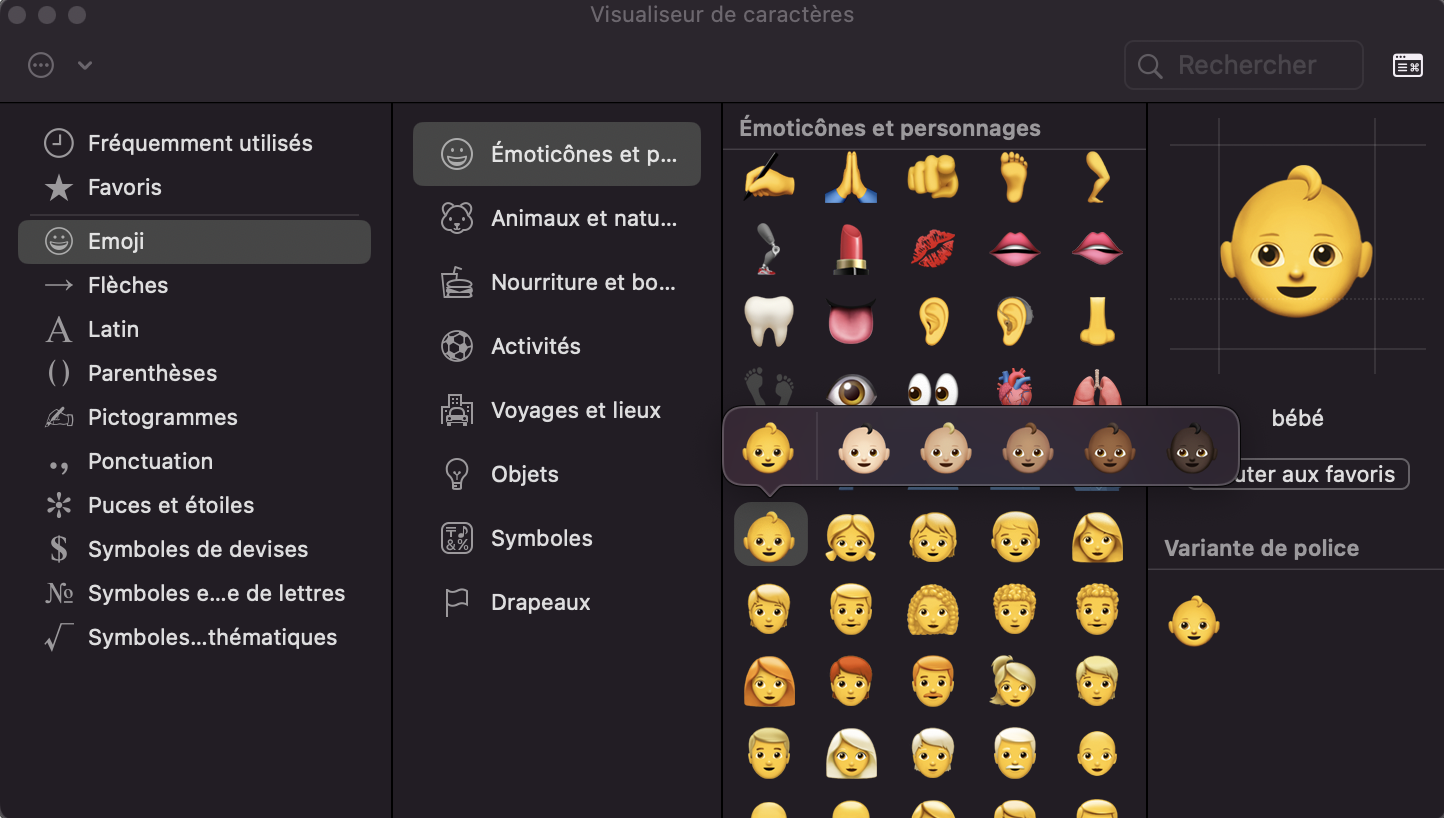J'ai sélectionné une couleur de peau à certains émoji sur mon macbook pro, cependant j'aimerai savoir comment changer la couleur de peau svp ? 👶🏼👧🏻👦🏾👩🏻🦰