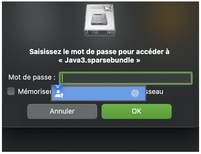 Ouvrir image cryptée sparsebundle avec Touch ID Mac