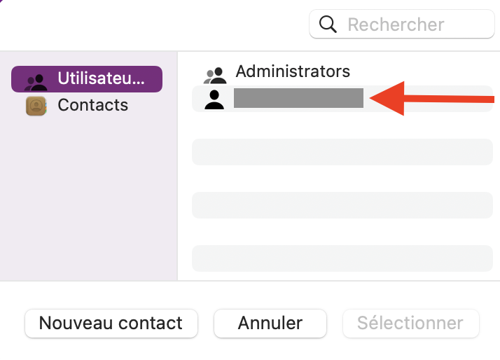 4. Sélectionnez le nouveau propriétaire dans la colonne Nom, cliquez sur le menu local Action  en bas de la fenetre, puis choisissez « Faire de __ le propriétaire ».
