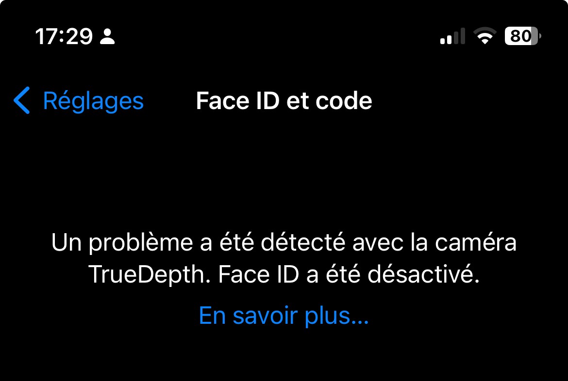 Apple n'a pas de solution pour moi :Et voilà mon problème FaceId :