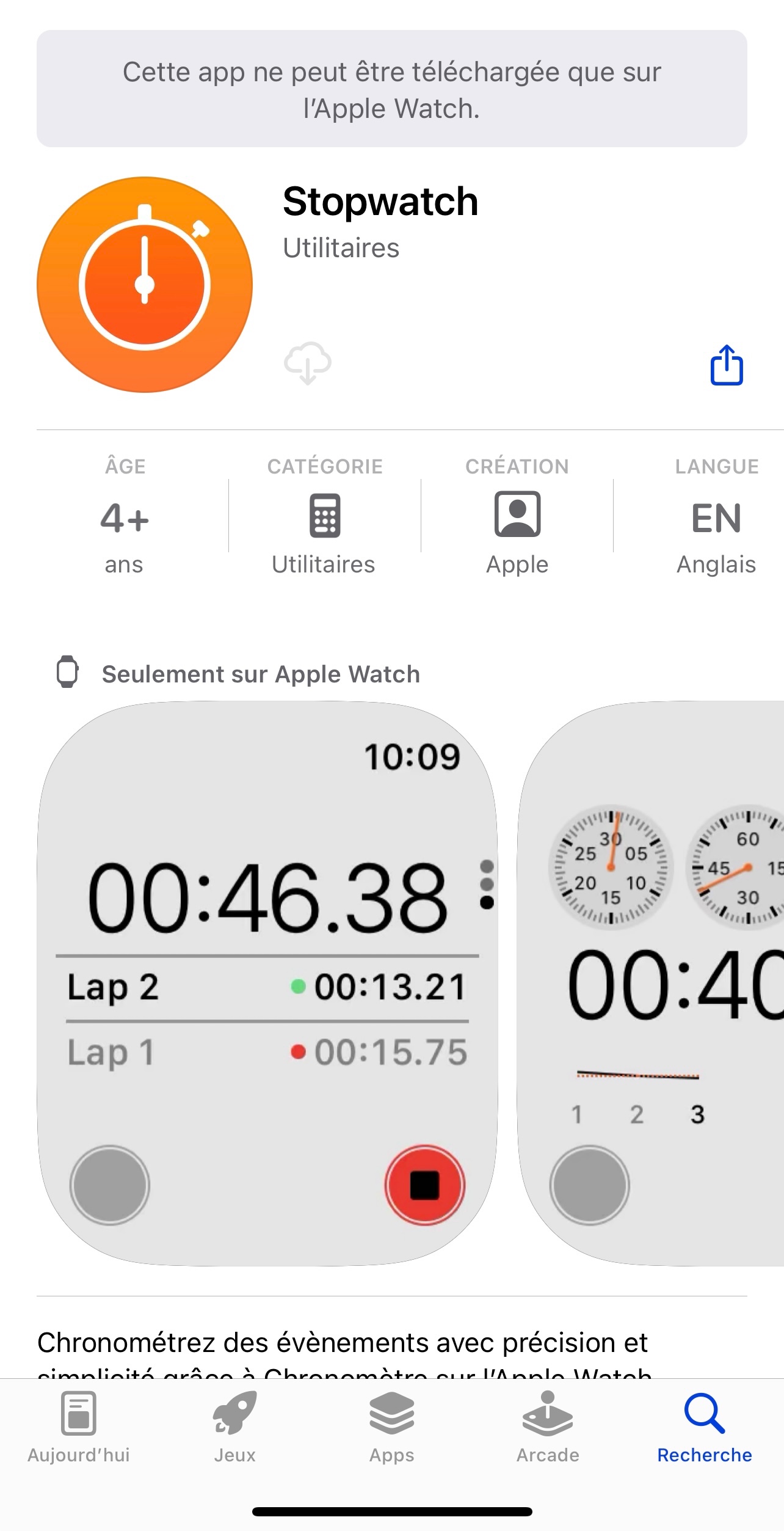 Application supprimé par erreur sur Apple Watch, impossible à retouver sur App Store