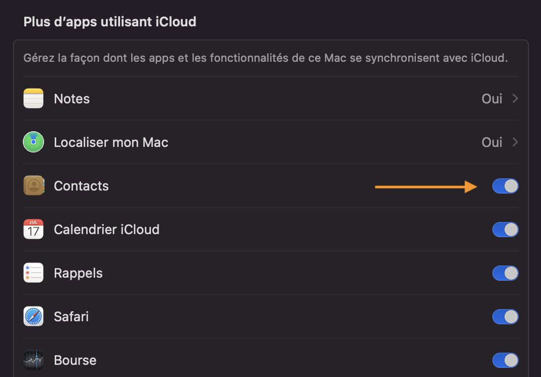 Tu vas dans Réglages Système / Clic sur ton nom / iCloud / Afficher plus d'Apps.. dans Apps utilisant iCloud :