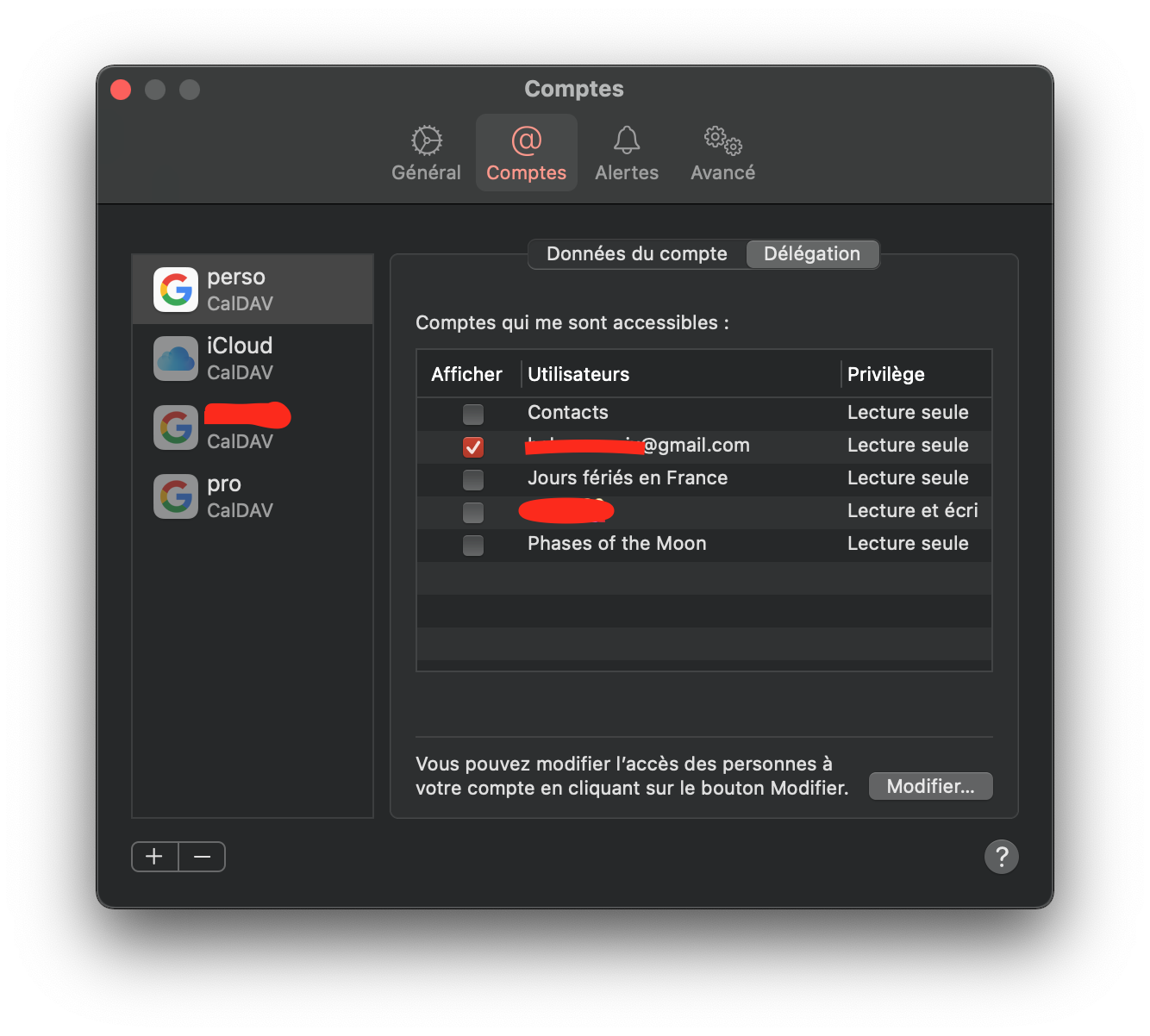 calendrier délégué google