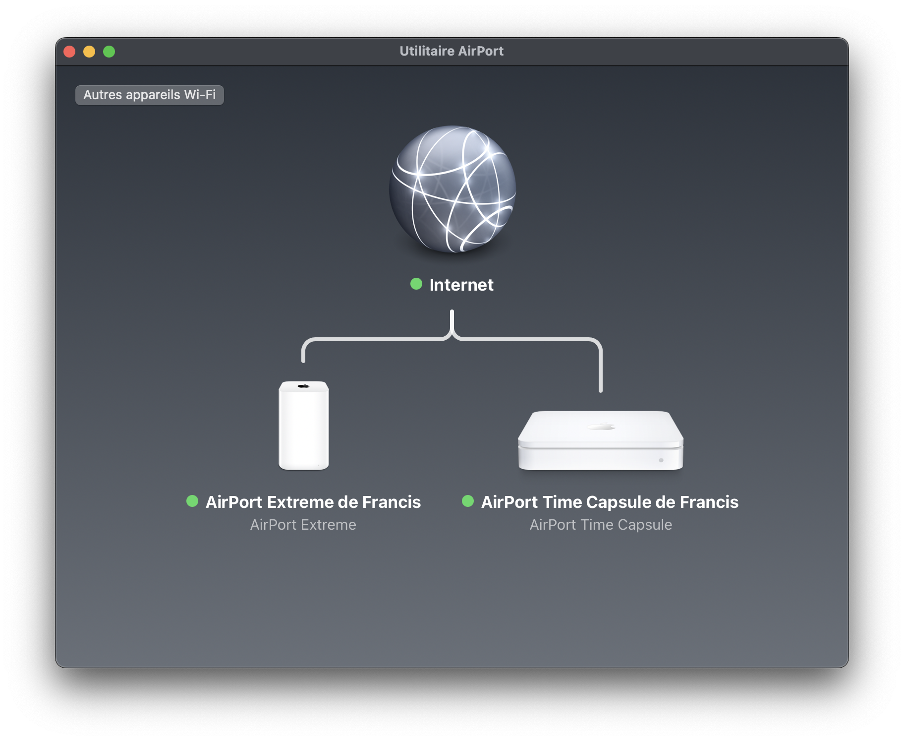 On peut également y accéder en mode filaire, via les ports existants sur la Time Capsule