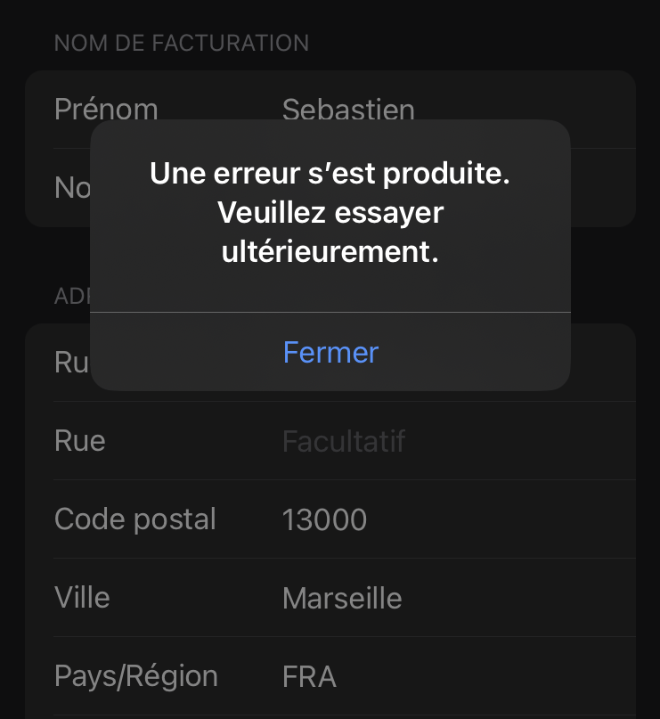 As-tu la possibilité d'utiliser un autre mode de paiement (une autre carte bancaire que celle que tu utilises actuellement) pour voir si cela fonctionne ?