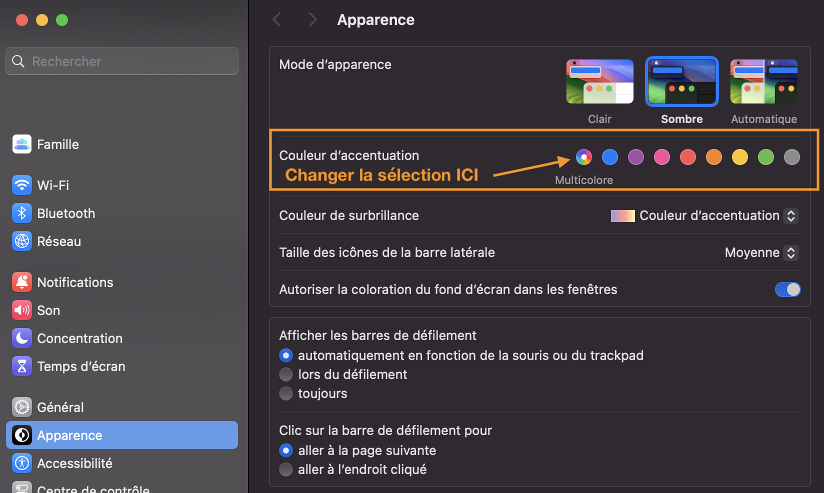 Sur Mac OS Ventura dans l'app photo le cadre qui apparait à la sélection est gris et je voudrais changer cette couleur pour mieux voir ce que je fais. Possible? merci