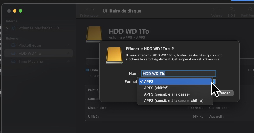 Effacer et reformater un périphérique de stockage dans Utilitaire de disque sur Mac - Assistance Apple (FR)