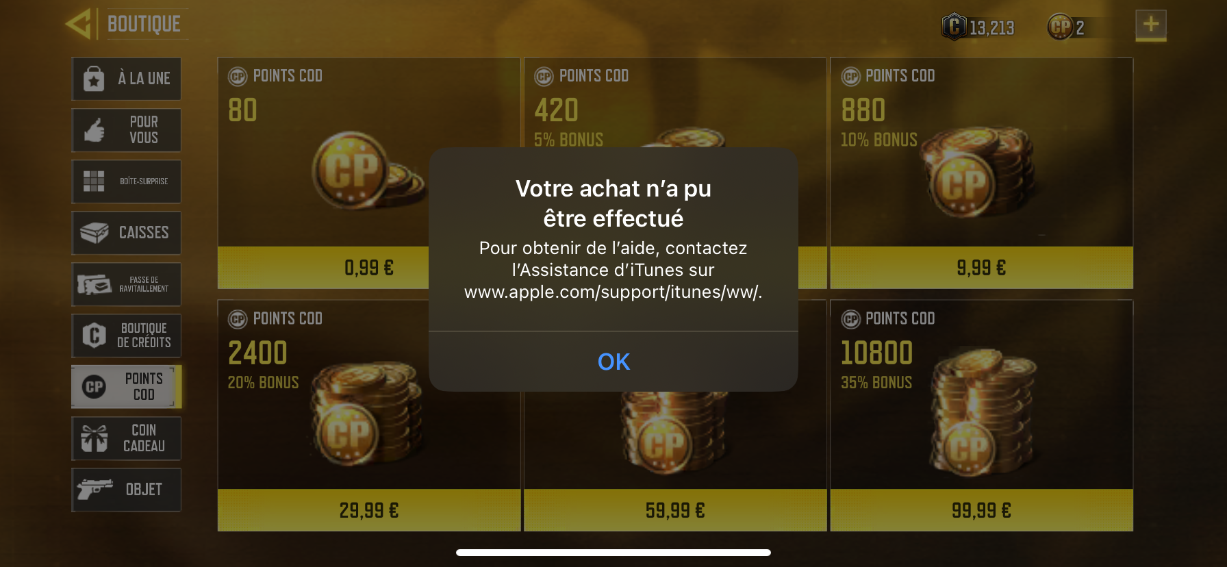 j’essaye de faire un achat sur call of duty mobile mais à chaque fois ça refuse je sais pas pourquoi