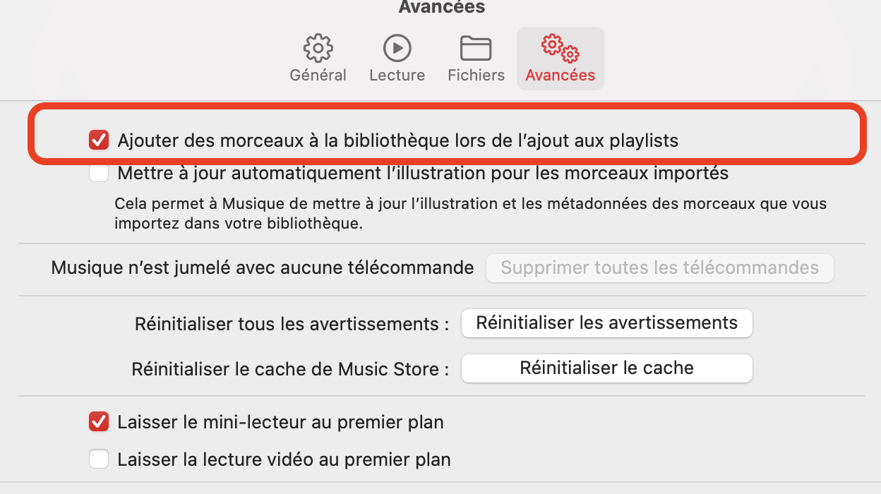 Cependant, le problème que je rencontre c'est que, que ce soit sur iPhone ou sur Mac, le réglage se réinitialise à chaque fois. C'est à dire que lorsque je la décoche, elle redevient coché automatiquement après avoir ajouter un morceau. Je suis donc obligé de la re-cocher manuellement à chaque ajout de nouveau morceau.