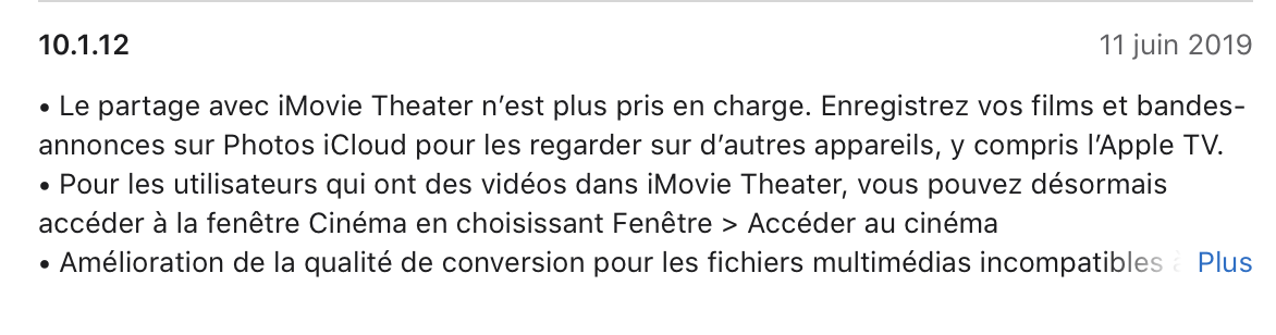 "La version de iMovie installée sur ce Mac n’est pas compatible avec macOS Monterey. Vous avez « iMovie » 10.1.12. Téléchargez gratuitement la version 10.4 dans l’App Store"