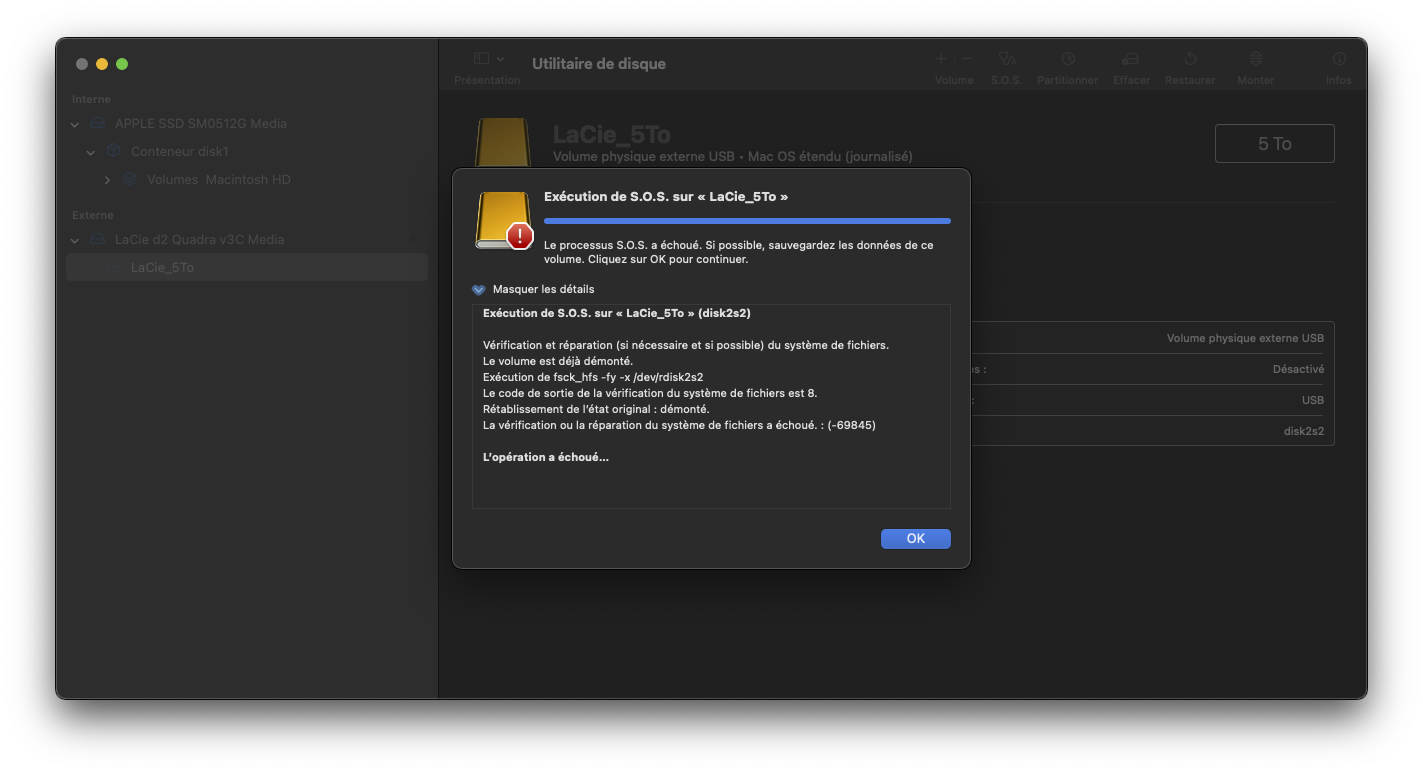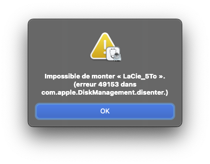 Disque dur externe Lacie 5 To ne monte plus sur mon Bureau sous Mac Pro 6.1 sous Monterey 12.7.1