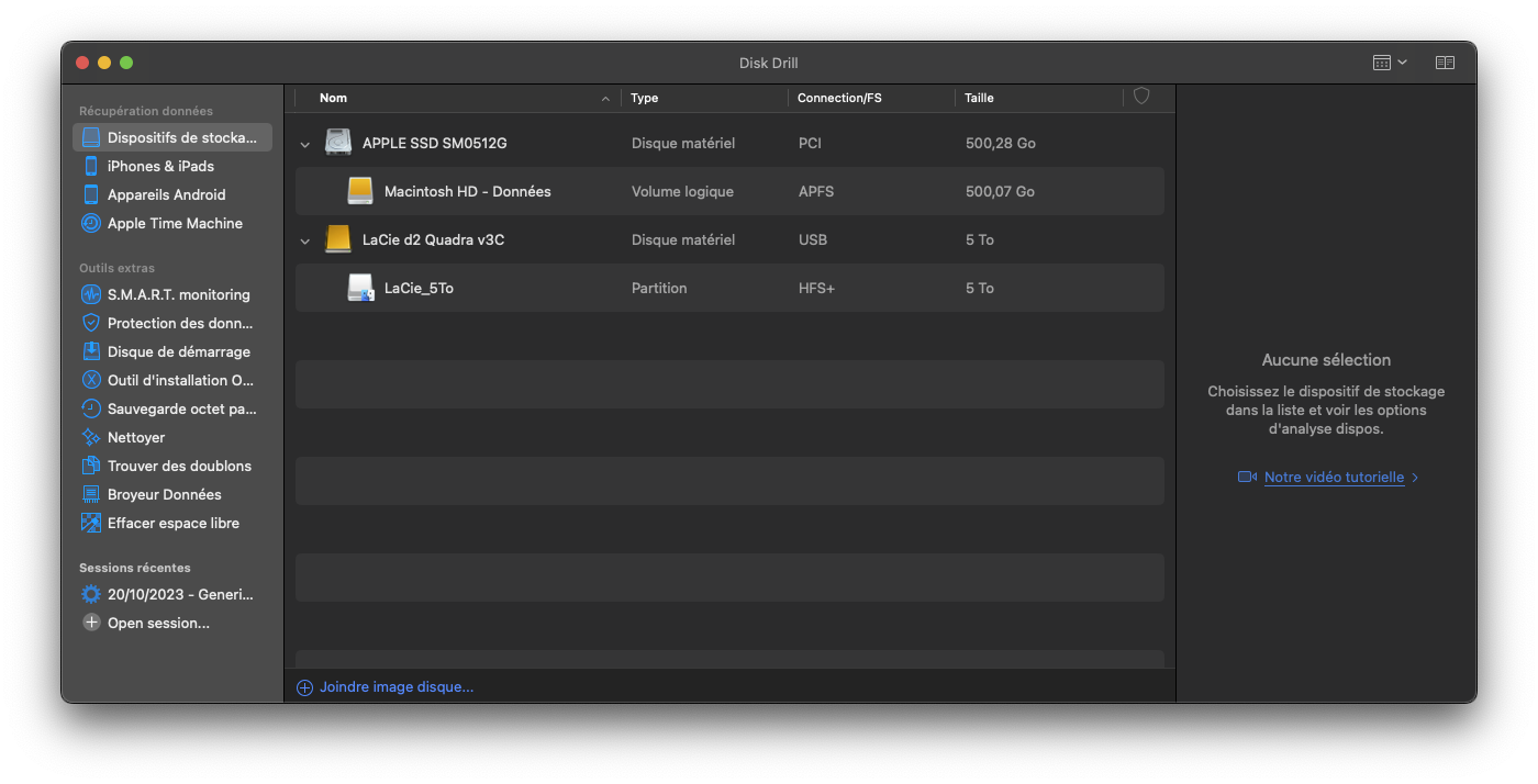 Mon disque dur externe mécanique LaCie D2 Quadra de 5 To ne s'affiche plus sur mon Bureau, ce, d'un seul coup pendant l'envoi d'un courriel.
