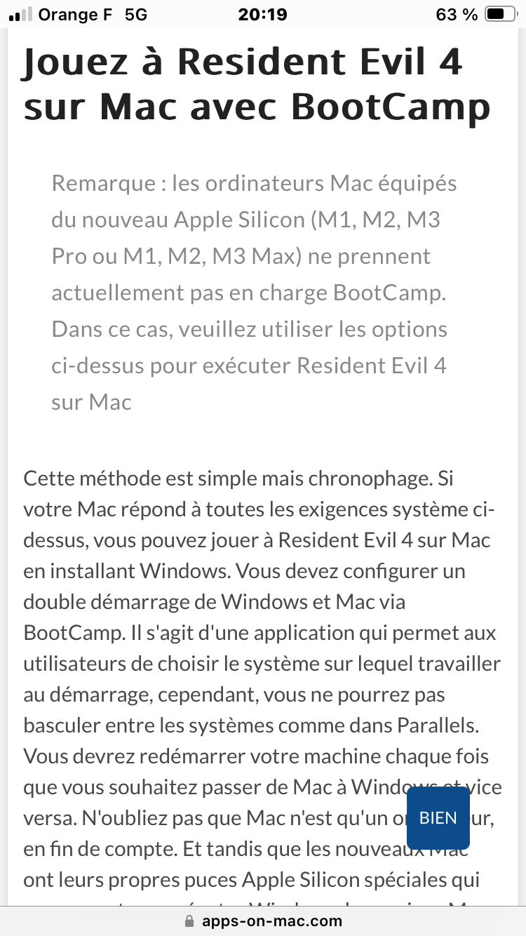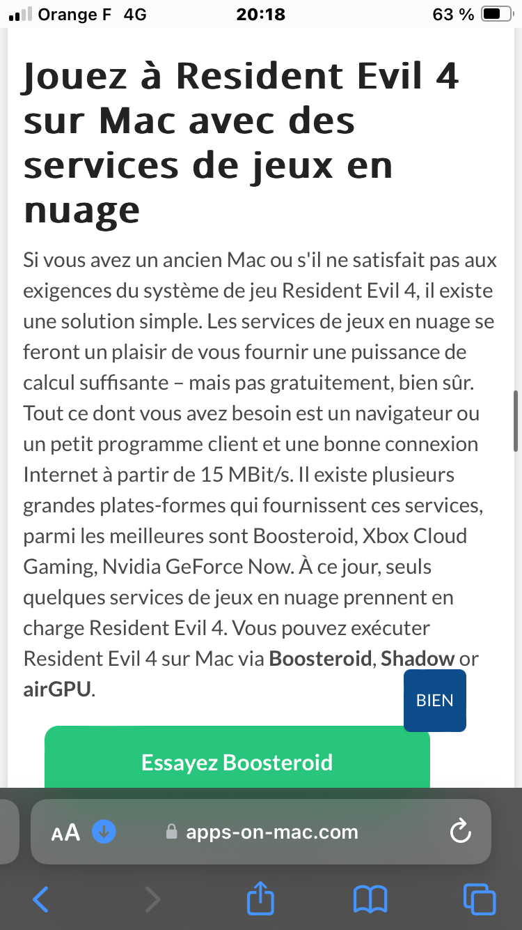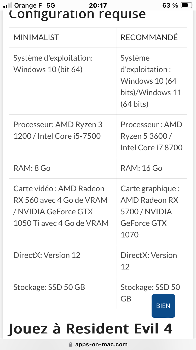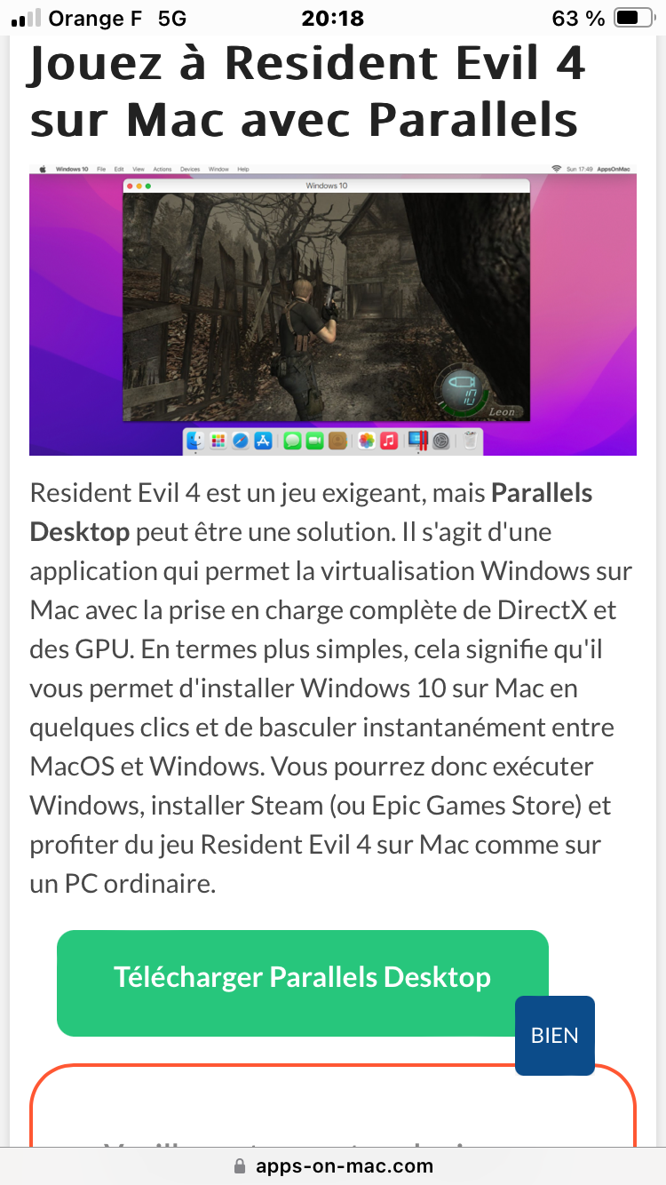 Je tente de télécharger le jeu Resident Evil 4 Remake (qui vient de sortir aujourd'hui) sur mon iMac M1 (sous macOS 14.2.1). A la fin du téléchargement, je reçois le message d'erreur suivant : "L'app n'a pas pu être installée. Veuillez réessayer plus tard". 2 tentatives réalisées aujourd'hui, même résultat. je ne vois pas ce qui peut clocher. Quelqu'un peut-il m'aider ?