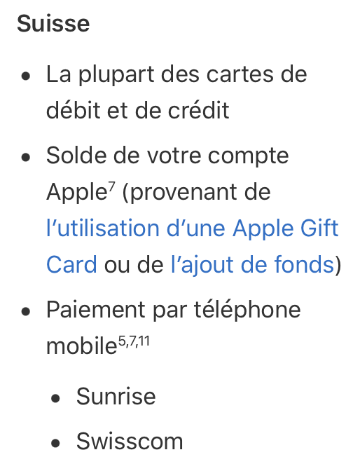 Je ne connaissais pas l'app Twint, mais après quelques recherches, il semble qu'il s'agisse d'une app de paiement Suisse. J'en déduis donc que tu te trouves peut-être en Suisse et si c'est le cas, voici la liste des modes de paiement que tu pourras utiliser avec ton identifiant Apple :