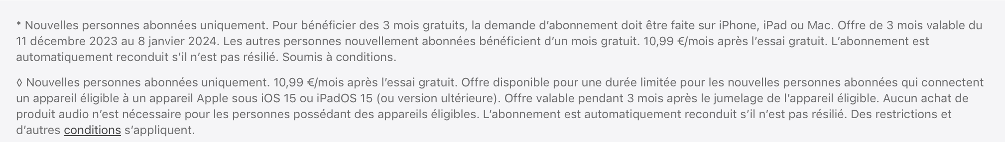 Bonjour, je n’ai jamais été abonnés à Apple musique auparavant. Mon conjoint qui a pu bénéficier de cette offre sur son tel m’a dit qu’on pouvait bénéficier de 6 mois gratuit avec Apple musique donc je m’abonne mais je n’ai pas 6 mois offert ..