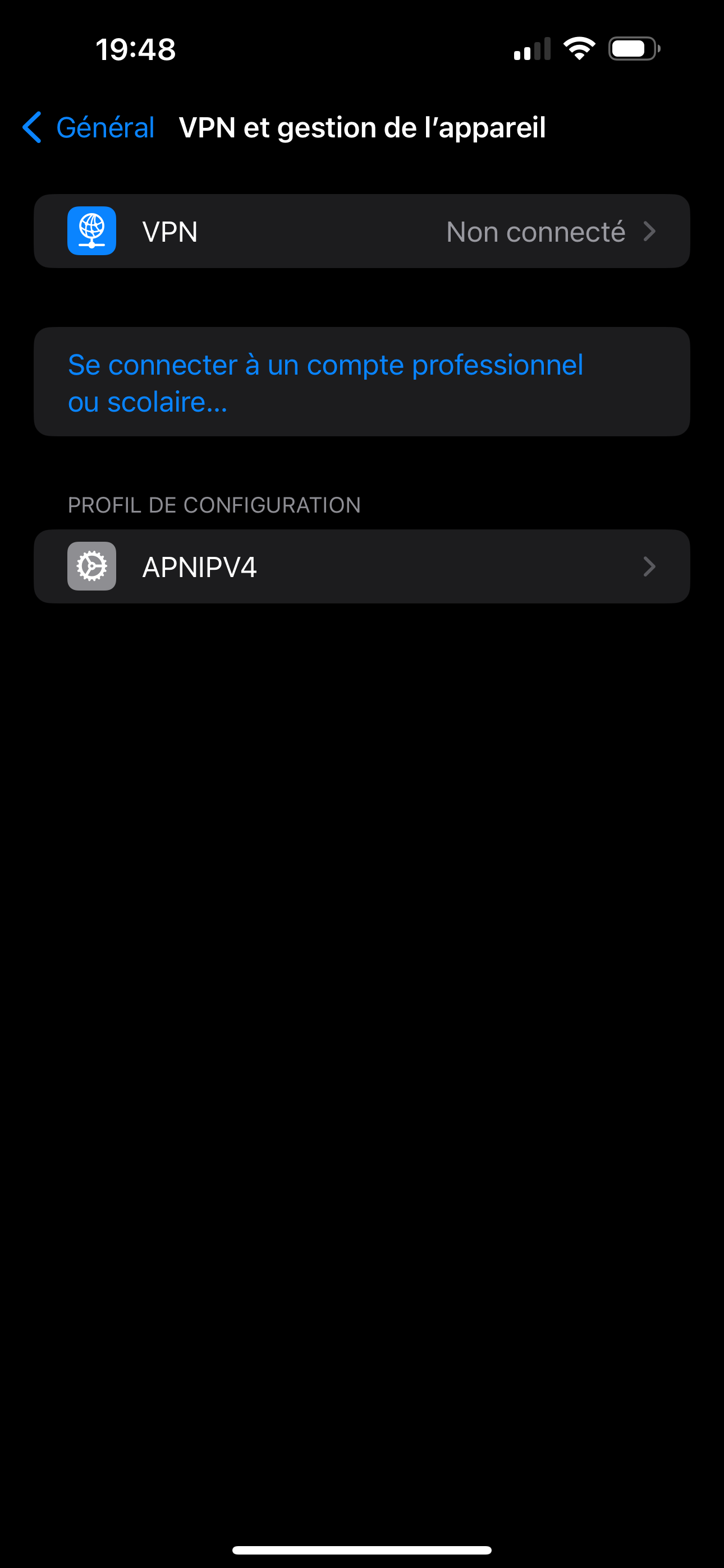 Il faut télécharger un profil de connexion et l'installer :