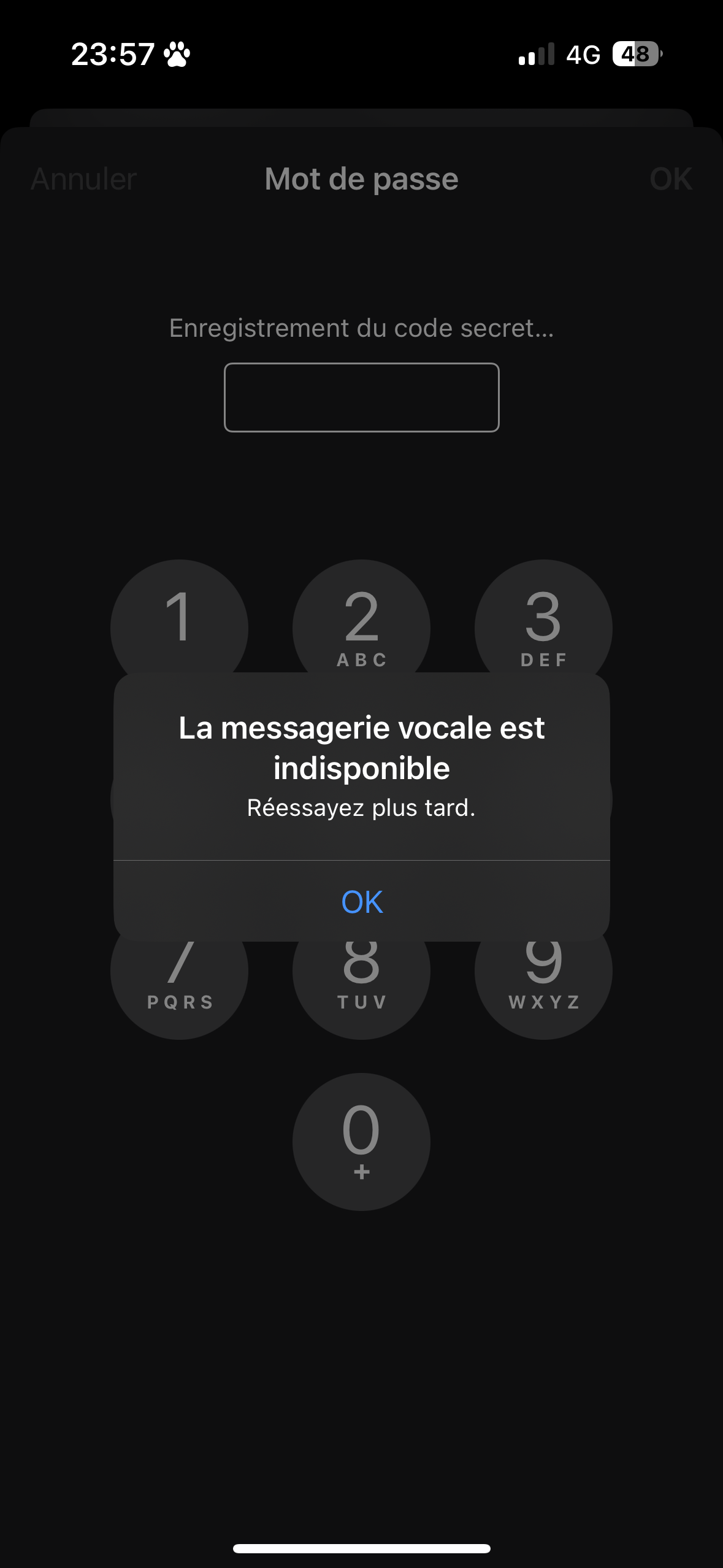 Lorsque j’essaie de mettre à jour mon code secret voilà le message que mon IOS m’affiche :