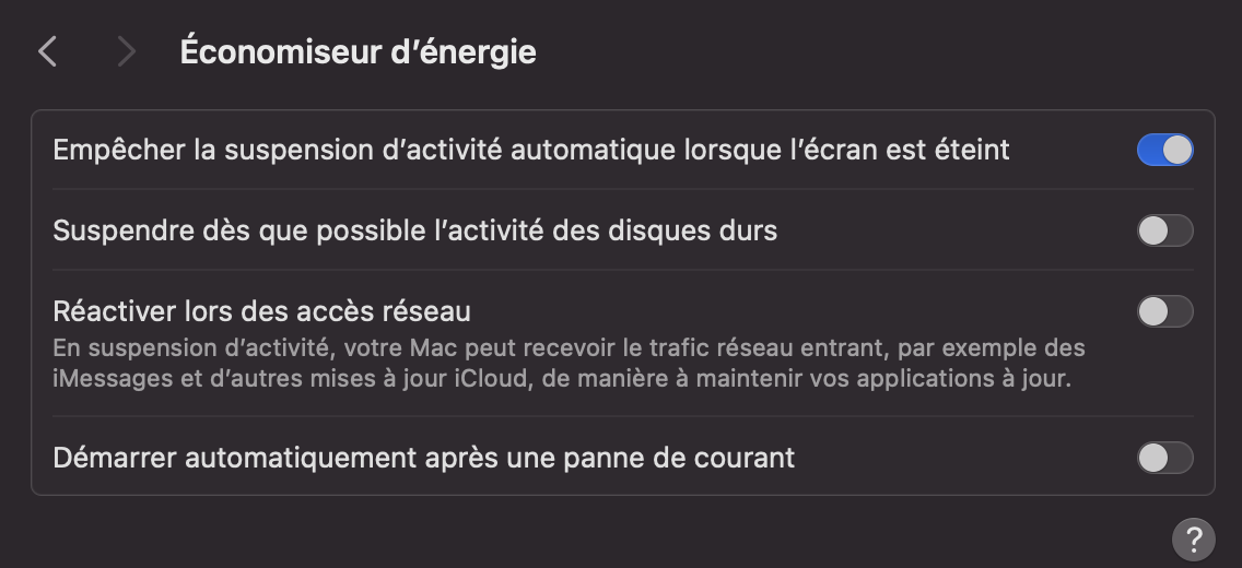 La case "Suspendre dès que possible l'activité des disques durs" est décochée.
