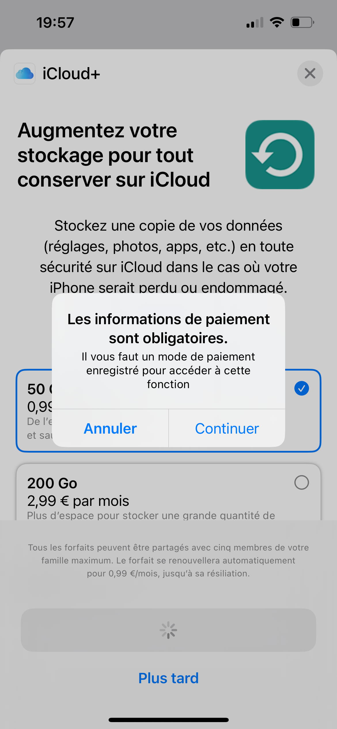 Je voudrais payer l’abonnement iCloud + mais je n’arrive pas car il m’est impossible de valider mes informations de paiement.