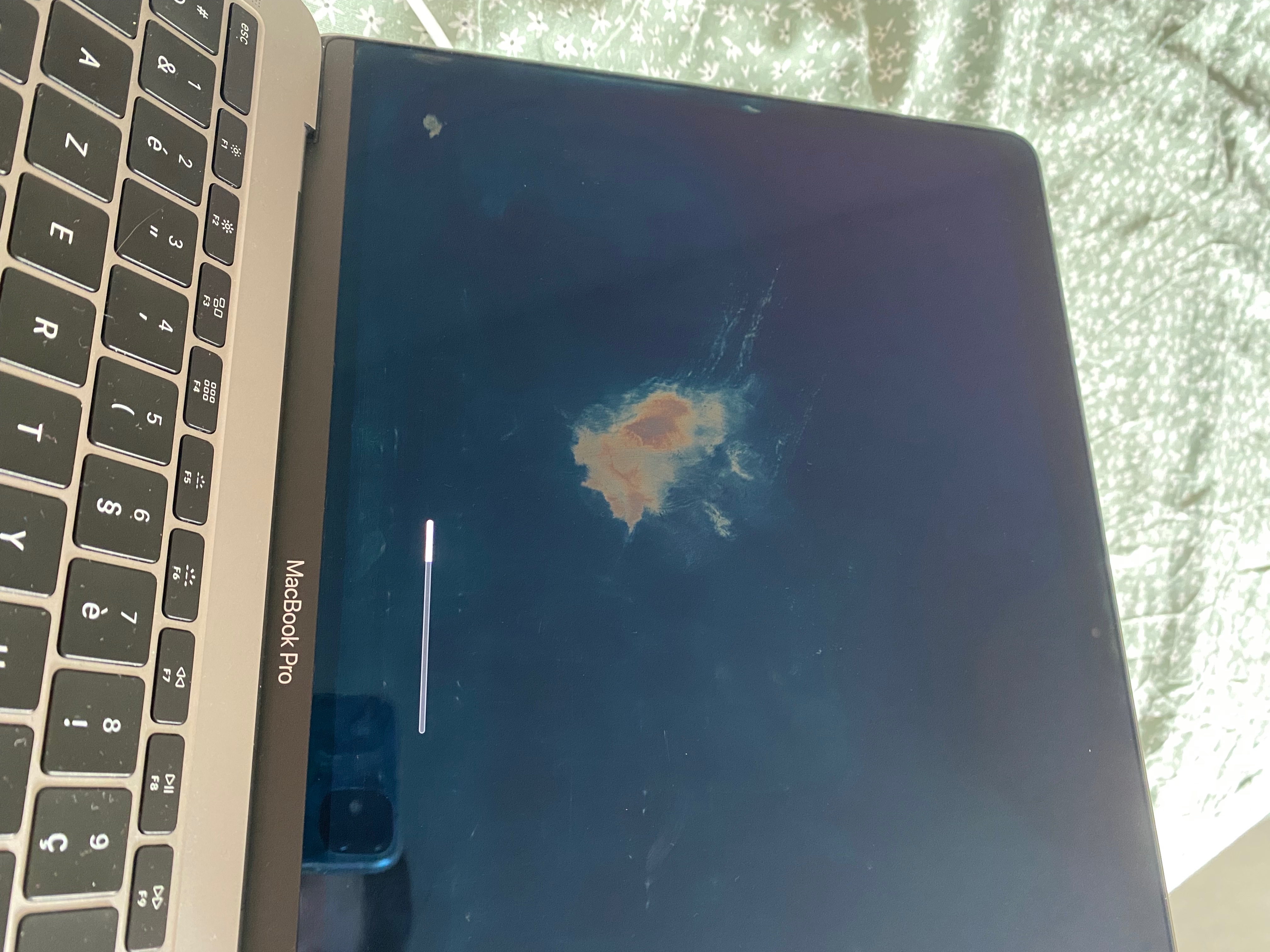 j’ai observer l’apparition d’une drôle de tache sur mon écran sans aucune raison apparente, j’ai beau frotter ça ne part pas.