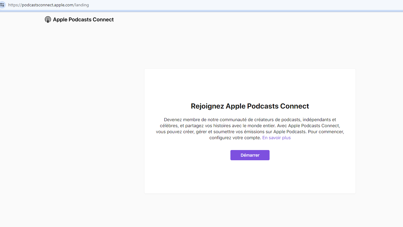 Je souhaite ouvir mon compte Apple Podcasts Connect pour avoir accès aux stats de mon podcast sur Apple Podcast.