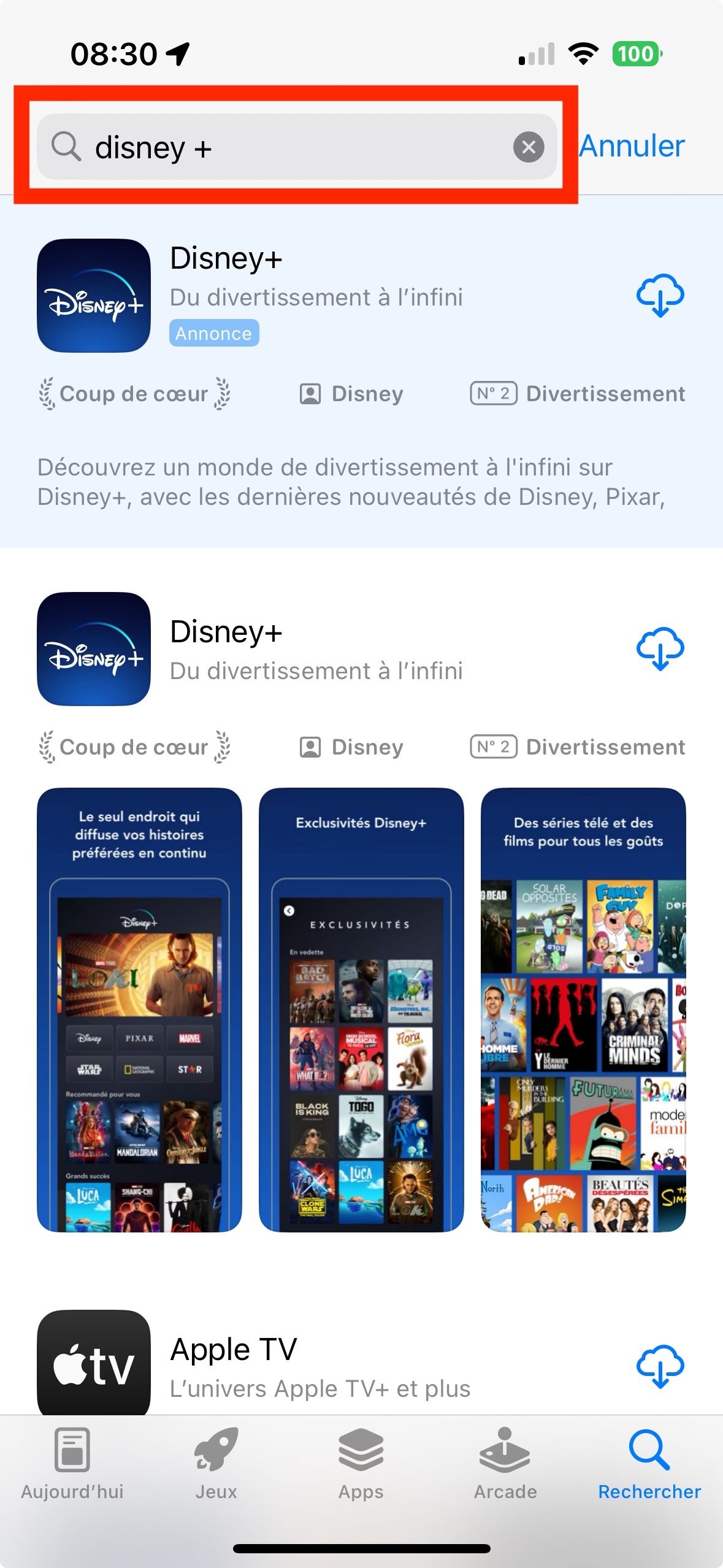 Si vous cherchez dans l'App Store a partir d'un ordinateur Mac, vous ne trouverez pas l'application Disney + car ce n'est pas disponible pour cette plate-forme (c'est disponible uniquement sur une page WEB