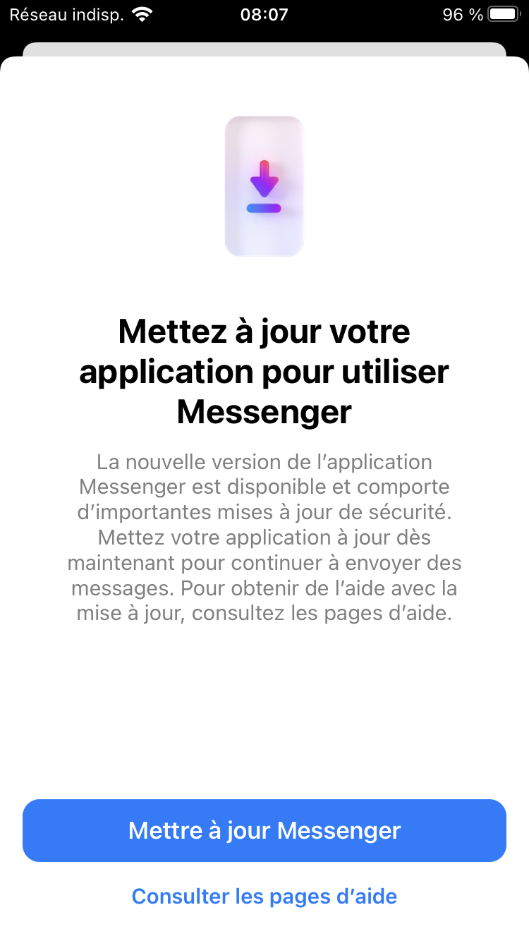 Il est impossible pour moi d’utiliser mon Messenger puisque qui demande la mise à jour.