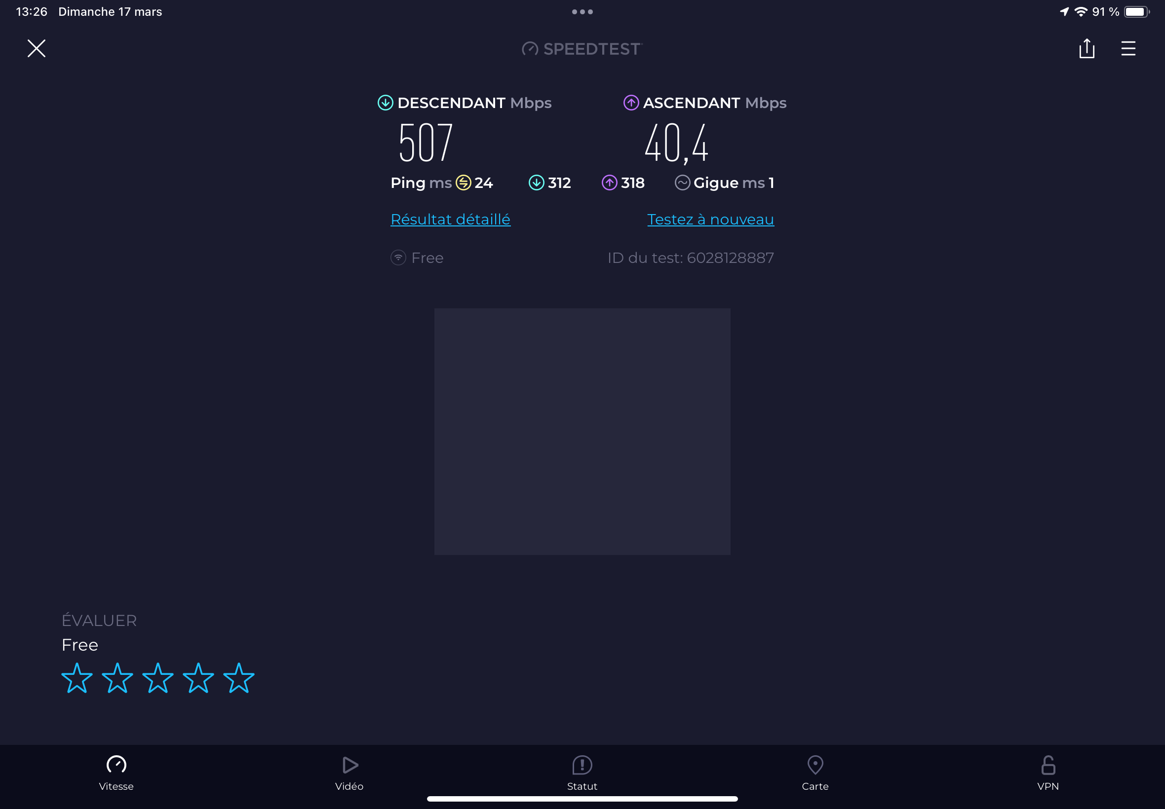Pouvez-vous poster le résultat d’un test de débit réalisé avec l’iPad placé très proche de votre box ?