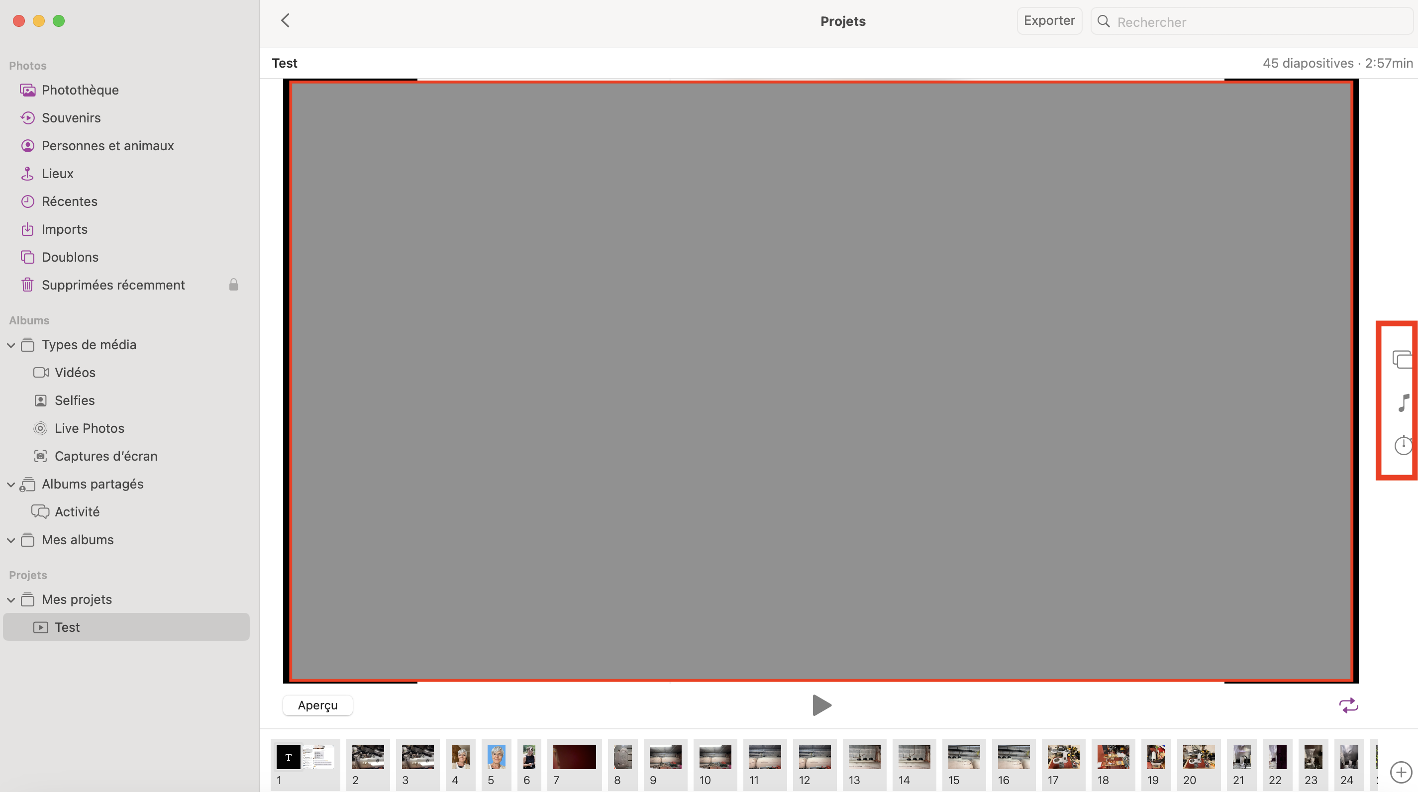 Sur mon IMac je ne trouve pas comment ralentir le défilement du diaporama proposé par Apple (diaporama proposé avec des thèmes prédéfinis par Apple : exemple « magazine » « à l ancienne »…)
