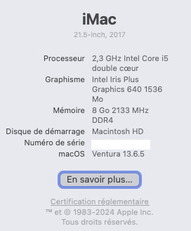 iMac 21.5″, macOS 13.6