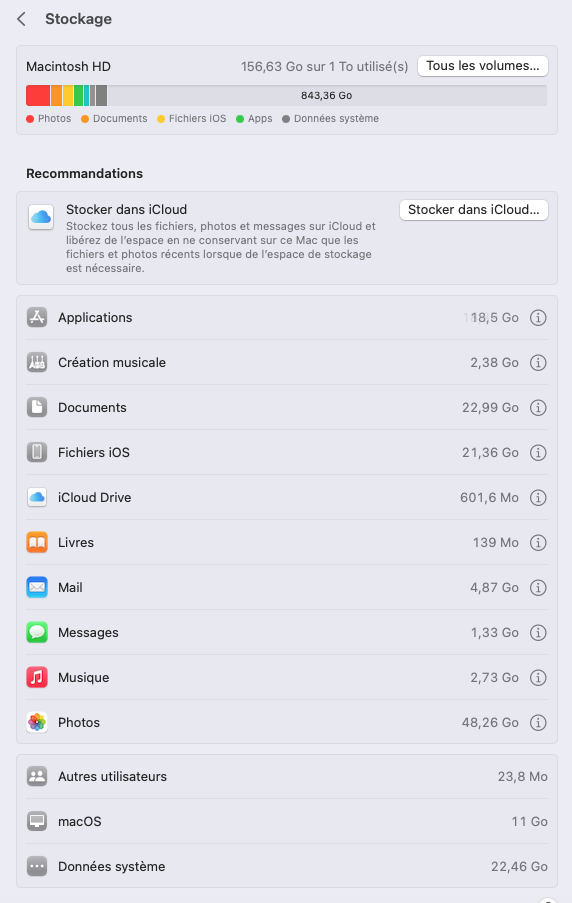 Il faudrait en effet passer sur un SSD et rajouter de la RAM, mais il n'est pas certain que cela améliore drastiquement les performances... l'iMac a un processeur très limite pour Ventura, ce n'est qu'un dual core de plus cadencé à 2.3Ghz.