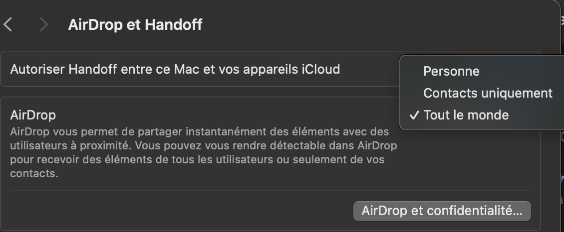 Avez-vous vérifié si les réglages Air Drop sur votre Mac Book étaient corrects ?