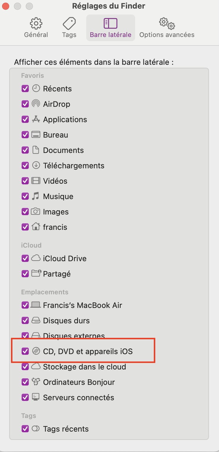 Je viens de recevoir le lecteur CD externe d’Apple pour mon Mac M2 de 2023. Pb : il n’apparaît pas dans la barre latérale. Il est apparu pendant quelques secondes puis a disparu. Finder le trouve, j’ai pu écouter des morceaux sur CD.
