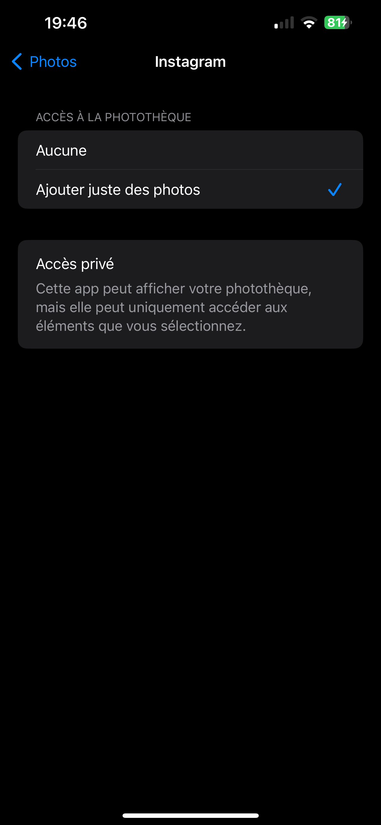 Dans le menu Confidentialité ensuite Photos, pourquoi certaines apps sont à "Accès privé"?