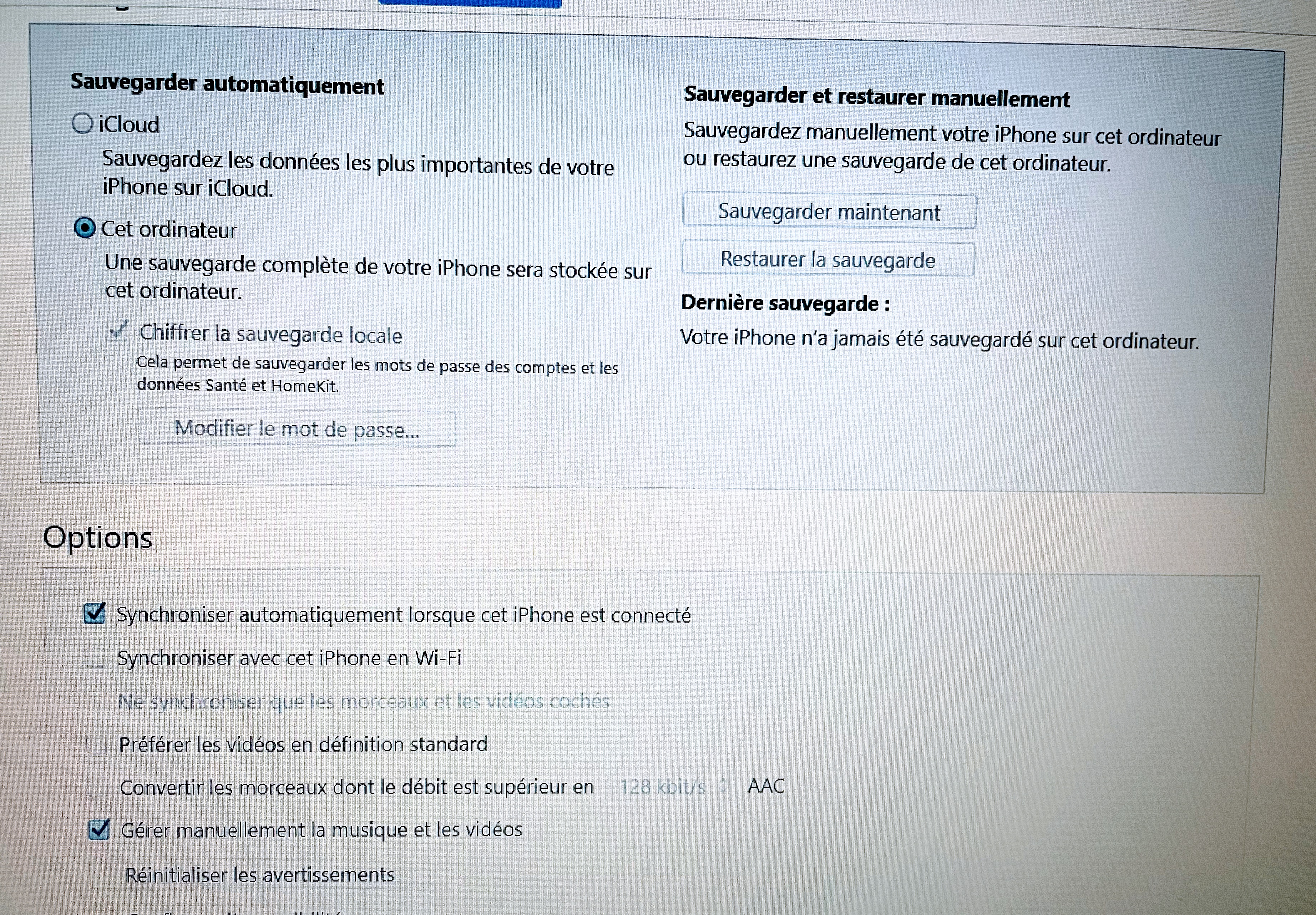 je suis allée voir l’assistance apple, et ils m’ont confirmé qu’il fallait réinitialiser l’i phone en sauvegardant toutes ses données avant sur i tunes (tu connectes via un port usb ton téléphone à ton pc). Tu sauvegardes. Tu effaces toutes les données de ton iphone (comme si tu le revendais). puis tu le redémarres et tu réinjectes toute ta sauvegarde. Il faut gérer manuellement pour éviter de perdre tout ses mots de passe enregistrés sur l’i phone (cf copie d’écran ci-dessus).
