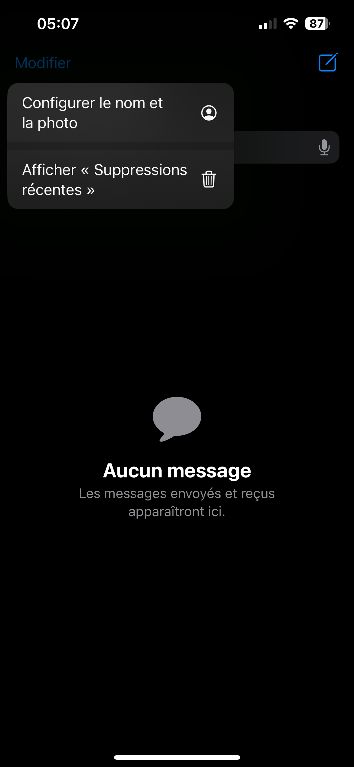 Lorsque vous ouvrez l'app Messages vous devez avoir cette fenêtre :