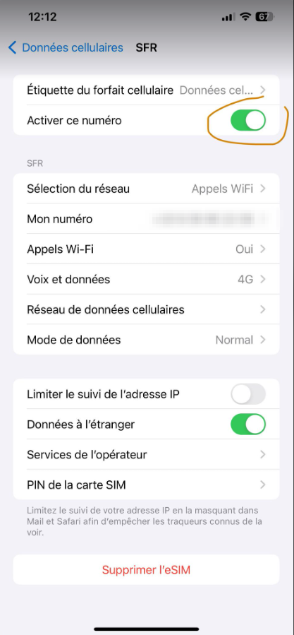 Chaque soir, lorsque vous rentrez du travail, vous avez la possibilité de désactiver la SIM professionnelle sans nécessairement la supprimer ni activer le mode Avion, comme illustré sur la photo