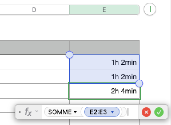 Dans la colle durée j'ai inscrit les durée au format tel qu'il apparait en PJ.