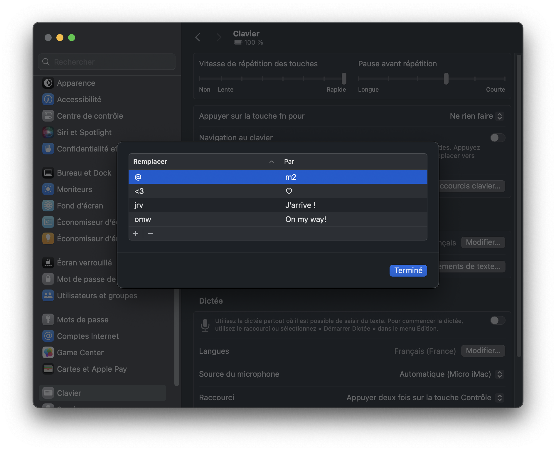 Vérifies dans Réglages système > Clavier > Remplacement de texte...