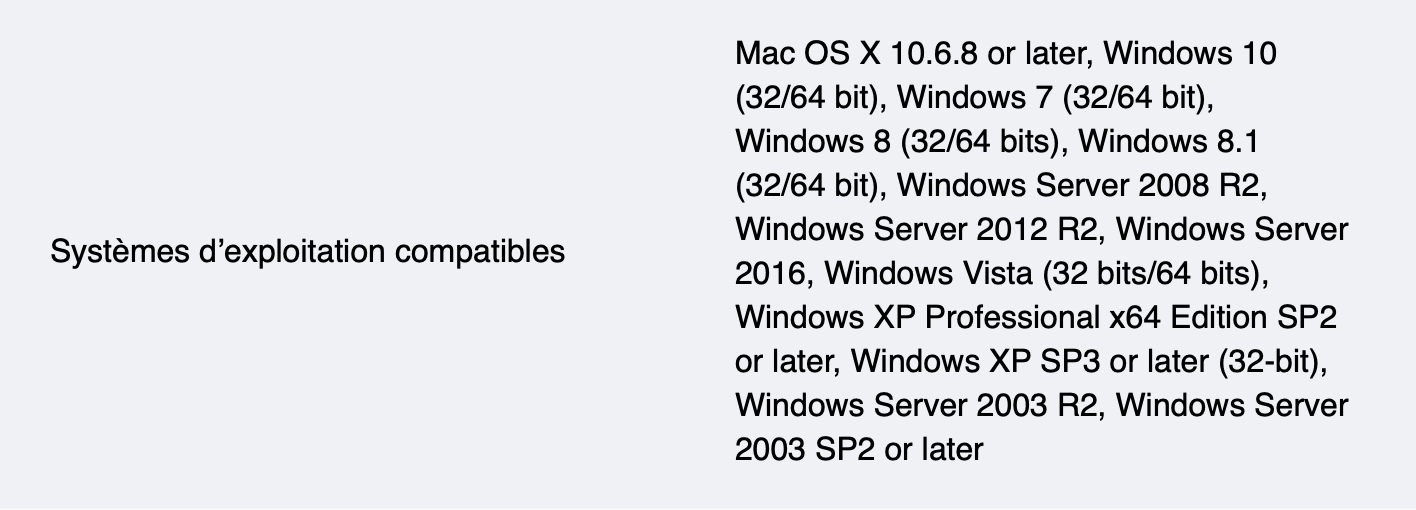 Note : Sur ces pages il faut bien choisir le bon "Système d’exploitation"