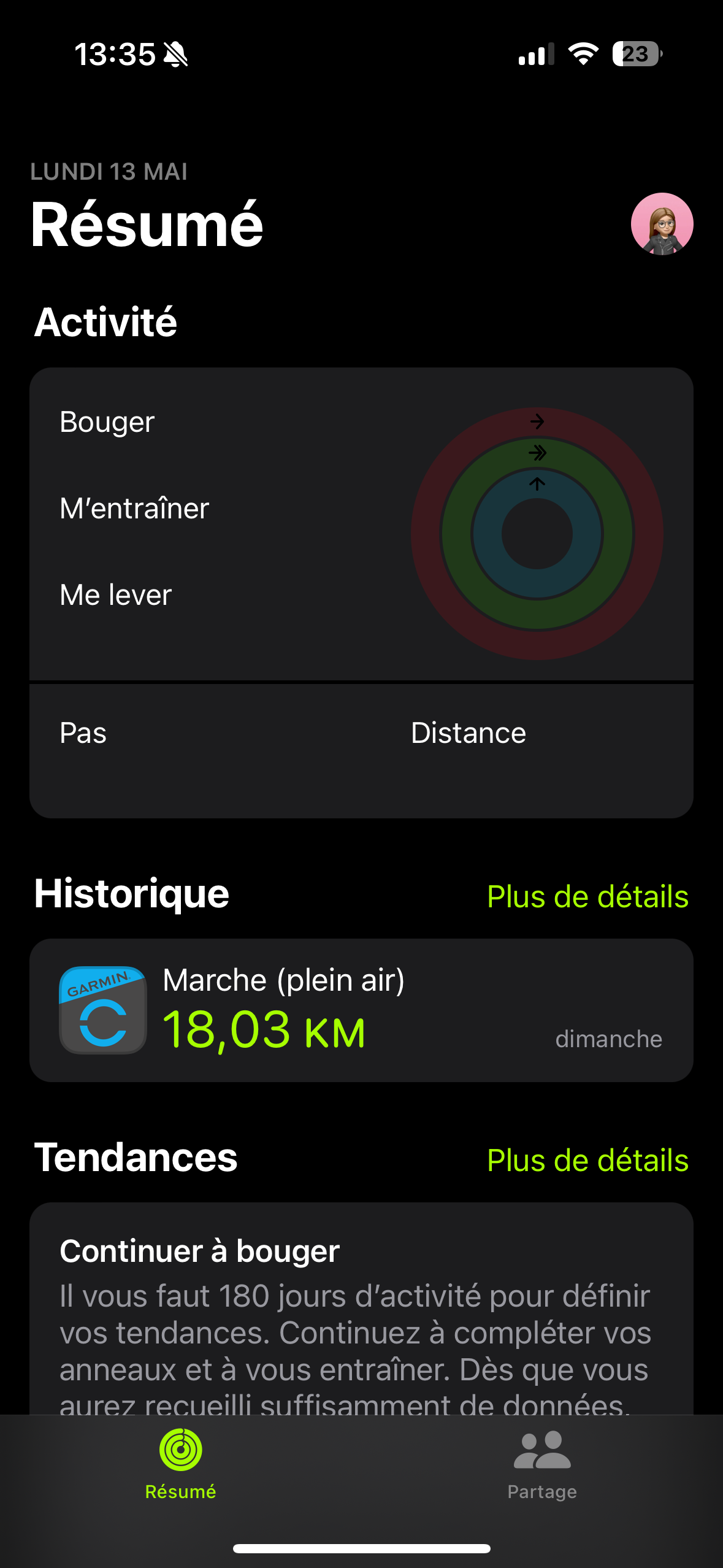 Je m’explique : les anneaux ne se mettent pas du tout à jour. Par contre, mes activités (course, marche,…) est tout de même notée dans l’application.