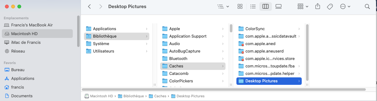 Macintosh HD / Bibliothèque / Caches / Desktop Pictures / Dossier portant un nom sous forme hexadécimal... /