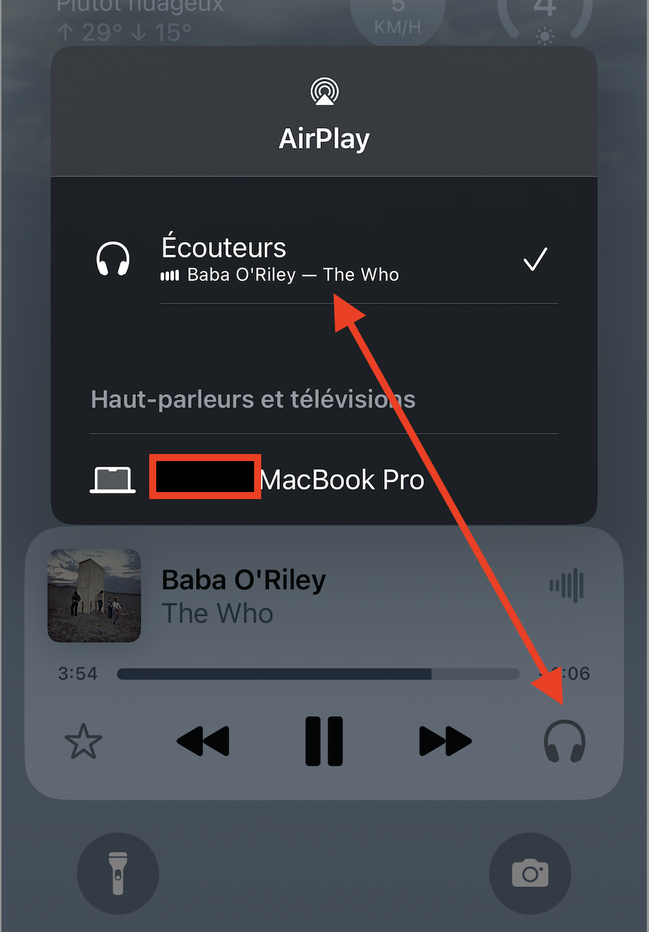 note: Même si j'ai choisie sur un autre équipement j'ai toujours la représentation d'un casque d'écoute dans l'application Musique