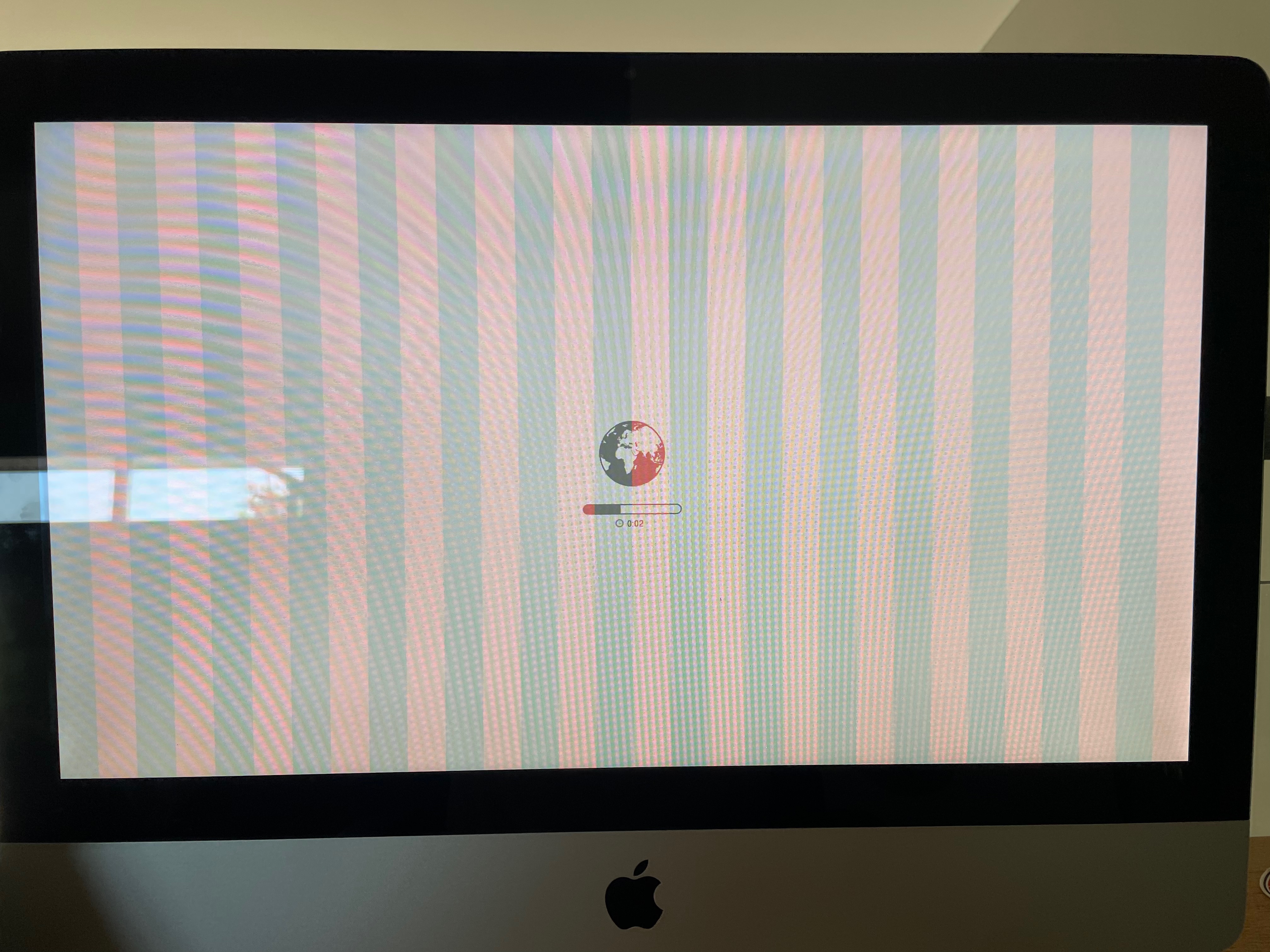 Le globe qui tourne et la barre de progression apparaissent, ensuite la pomme et la barre de progression apparaissent mais elle s’arrête au 3/4 , puis un écran blanc apparaît et là, le Mac est figé.
