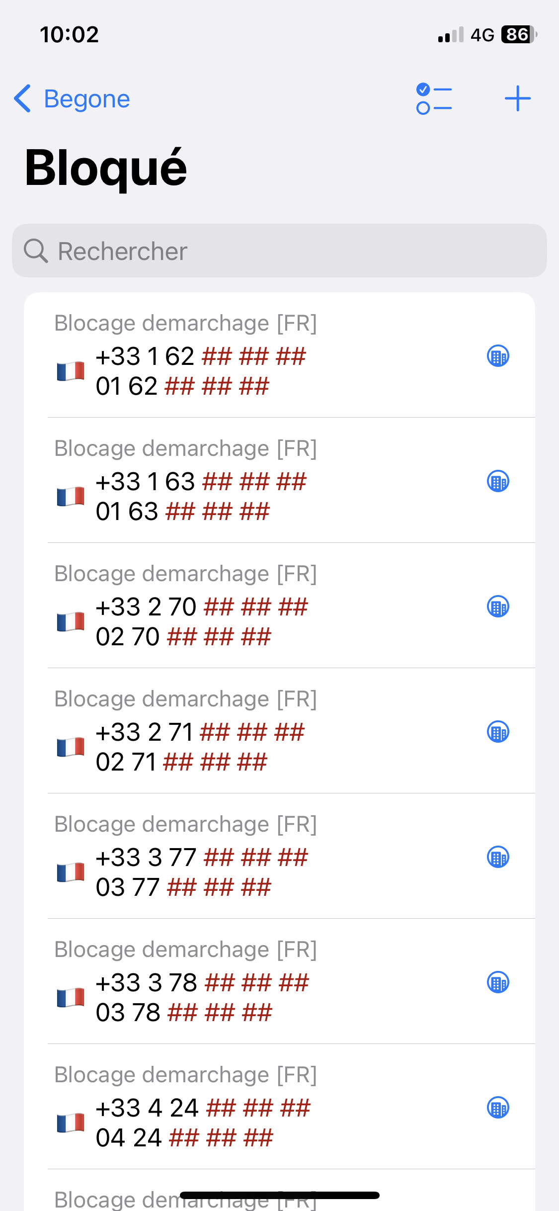 Désormais, l'ARCEP oblige les démarcheurs à utiliser plusieurs plages de numéros préalablement identifiées, soit au total +24 000 000 de numéros possibles à bloquer, ça fait beaucoup à entrer 1 par 1. Je vous propose donc ce tuto en s'appuyant sur une application bien spécifique, Begone :
