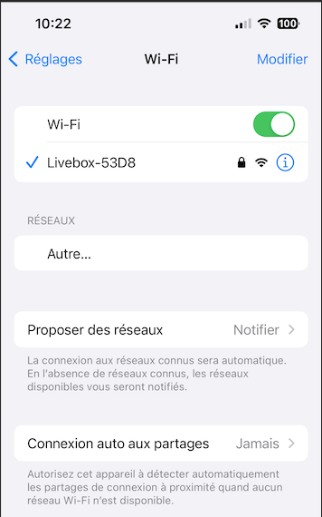Je suppose que vous passez bien par les Réglages>Wi-Fi pour tenter la connexion.
