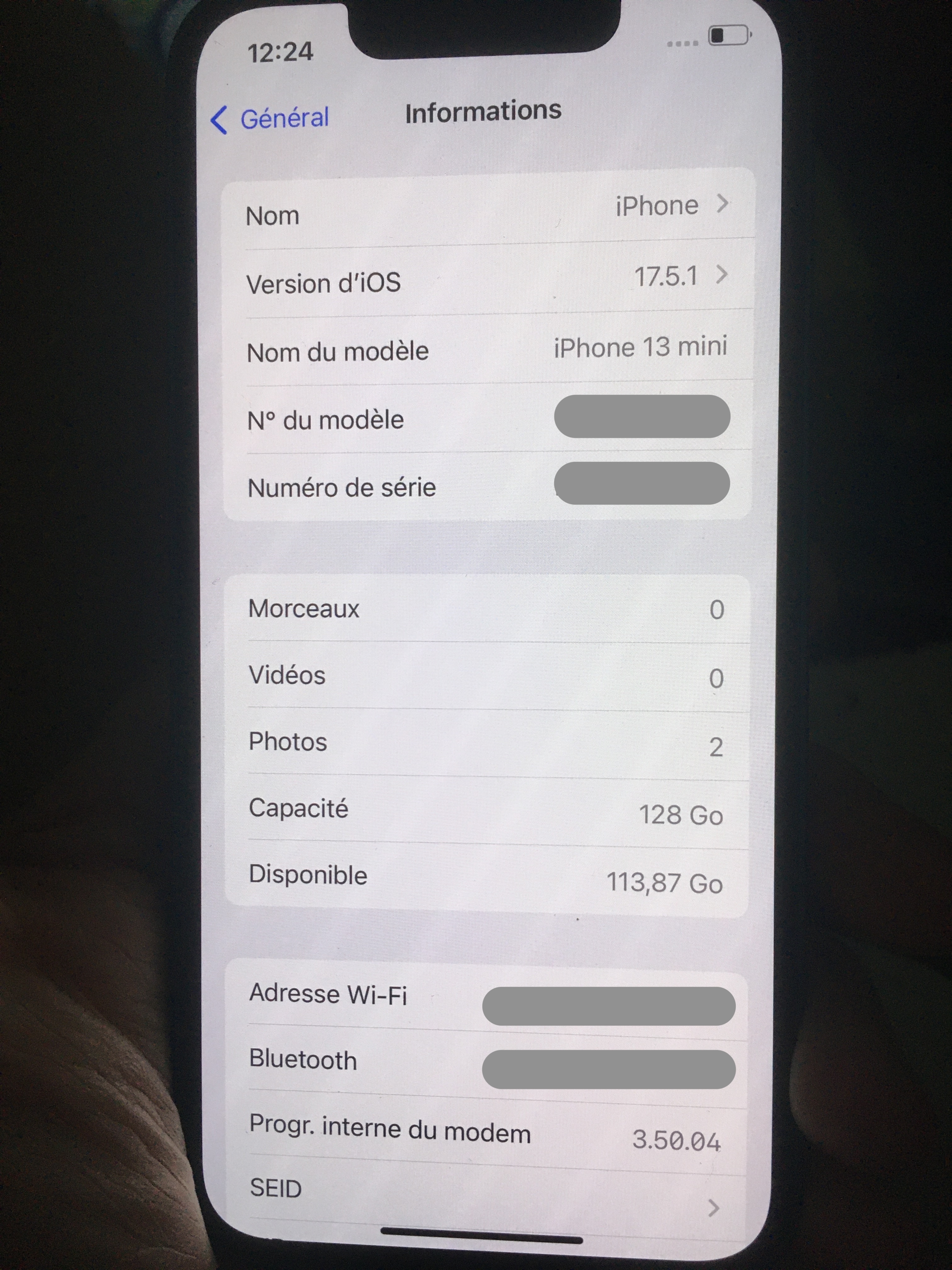 Bonjour , je viens d'acheter un iPhone 13 mini Chez EAsy Cash, je voudrai m'assurer de l'authenticité des pièces du téléphone car la capacité de la batterie est de 100% , je voudrais être sure de mon achat avant de commencer à l'utiliser