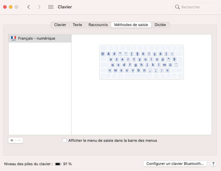 Configuration clavier numérique Mac