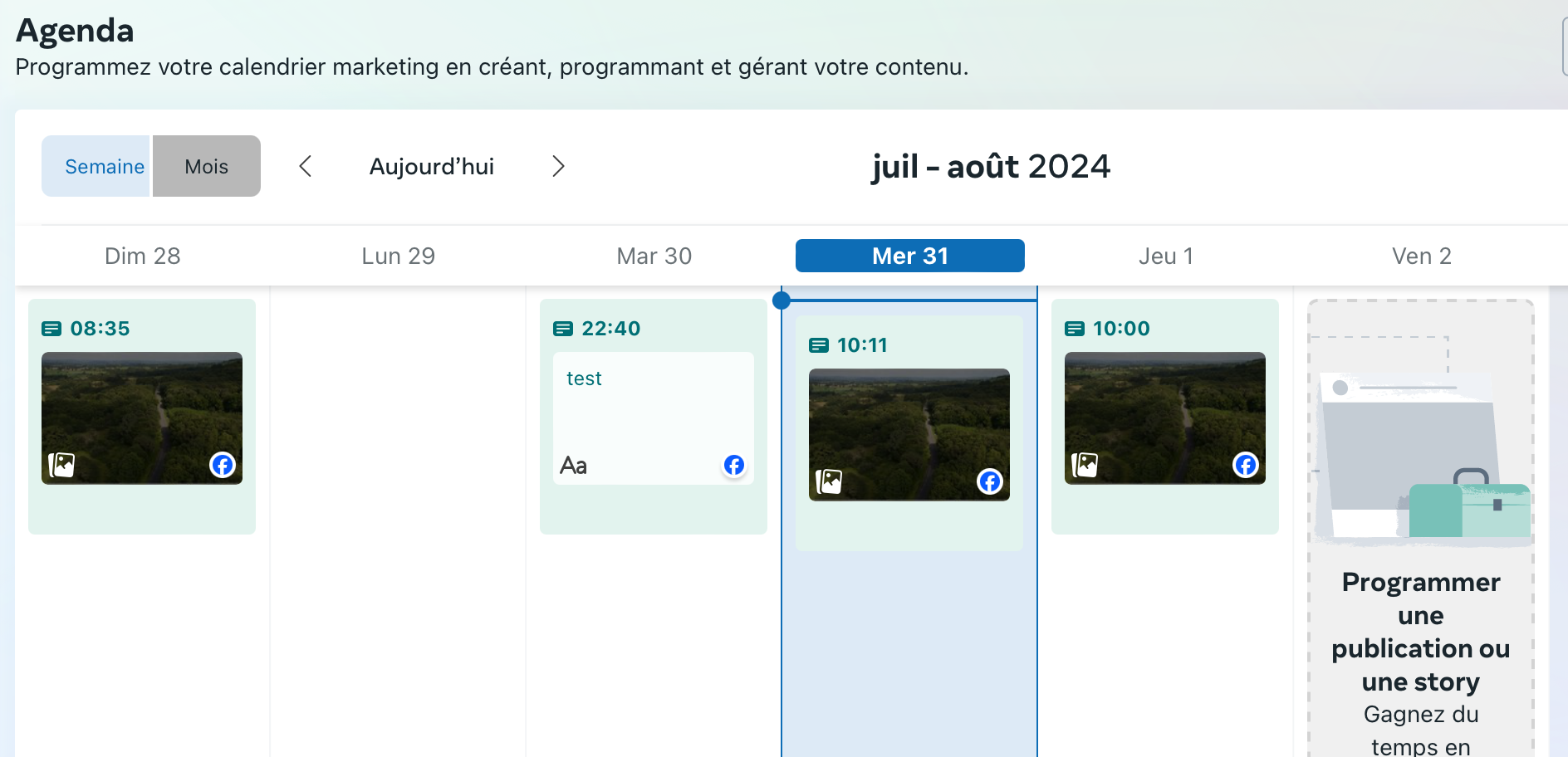 bonjour , depuis mon changement de Mac ( 2 semaines ), je n'ai plus la possiblité de programmer en avance des publications sur facebook . ca fonctionne sur un pc windows , problème de paramètres safari sans doute mais je ne trouve pas ce qu'il faut faire .