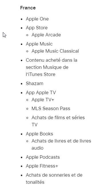 Source : Disponibilité des services multimédias Apple - Assistance Apple (FR)